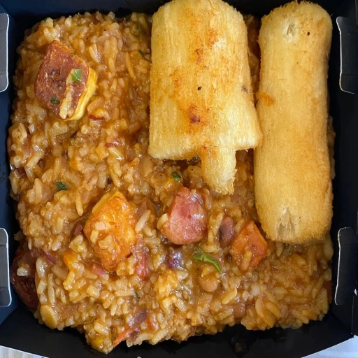 Uma explosão de sabor! Feijão carioca, cozido com arroz, calabresa, bacon e carne seca, queijo coalho derretido e um t... Ver completo