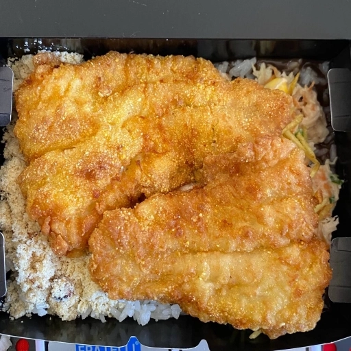 Filé de peixe bem temperado, empanado e frito, acompanha arroz branco, feijão preto e farofa da casa. Uma delícia!