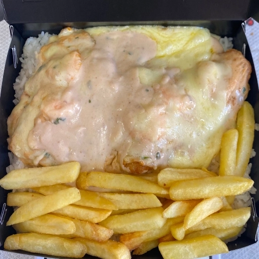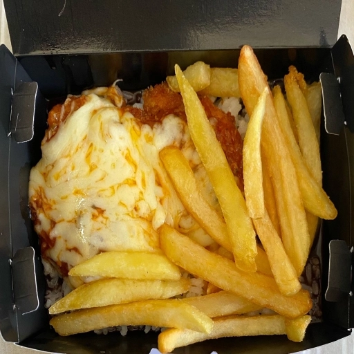 Filé de frango empanado, coberto com molho de tomate e muito queijo gratinado. Uma explosão de sabor que derrete na bo... Ver completo